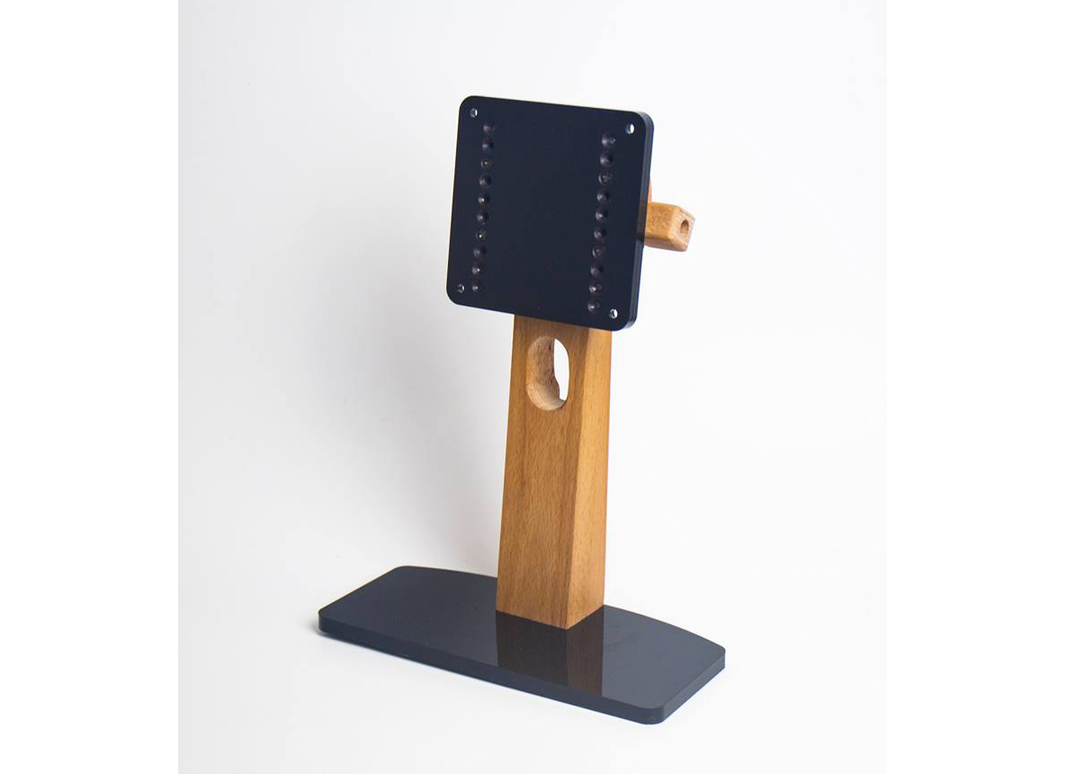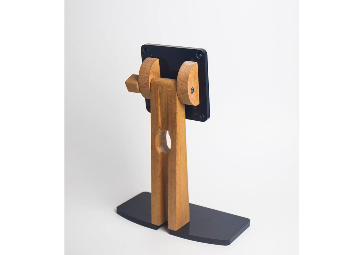I designed something on solidworks quickly, and soon realised that I had to find a way to make it blend with the monitor’s design. All wood was really looking weird. So I went for a laser cut acrylic base and vesa plate, for strength but mostly so it matches the plastic feel of the monitor. The wood for the post is beech, the same as the desk, so I think it all blends quite well.